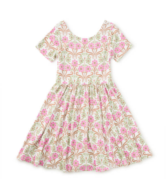 This beloved ballet silhouette gets an extra-soft update in our new PlaySoft fabric, designed for everyday comfort and easy movement. The smooth bamboo jersey feels cool and gentle against the skin, with just the right amount of stretch to support spins, skips, and everything in between. A classic crew neckline in front balances a softly scooped back, while the full circle skirt brings that twirl-worthy shape kids love. Finished with a lined bodice and elastic waist, it pairs perfectly with leggings or Somersault Shorts for effortless, all-day versatility.