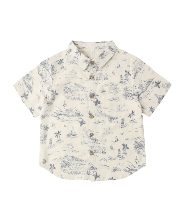 Rylee & Cru Collared Baby Shirt - Ocean Toile