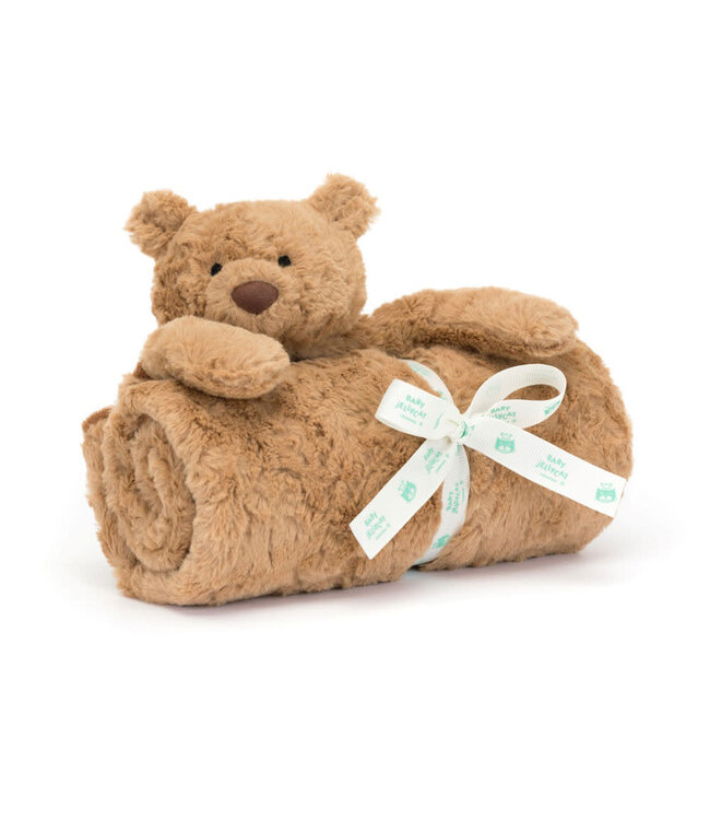 Bartholomew Bear Blankie is the ultimate comfort companion. With a plush, gentle square of soothing fabric and Bartholomew himself stitched securely in the corner, it’s designed to bring the most popular Jellycat teddy along for every cuddle.