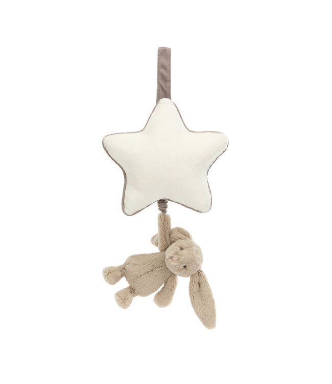 A soft cream star hides a sleepy surprise: tug gently on the mini-Bashful Bunny and a soothing lullaby begins to play. Perfect for cots, prams, and cosy corners, help little one drift into dreamland surrounded by Jelly joy.