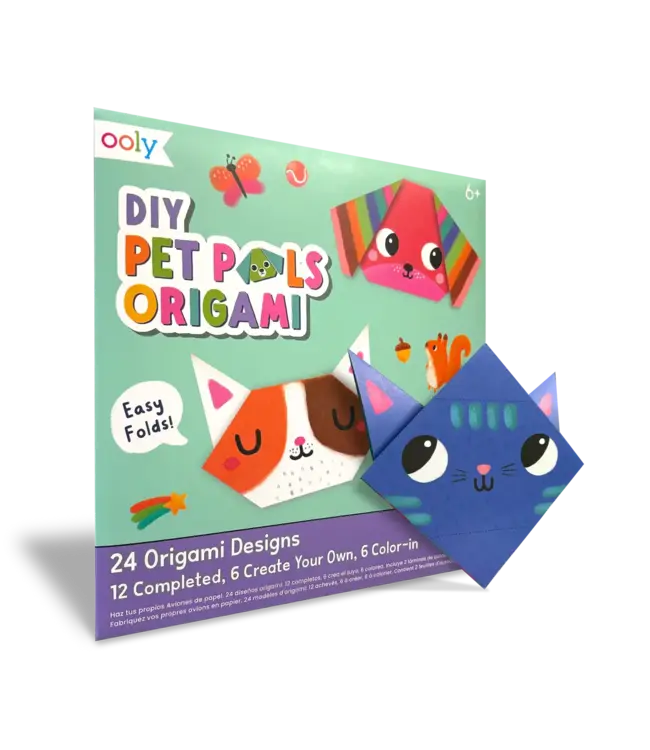 Fold, play, and decorate with the DIY Pet Pals Origami Kit—a beginner-friendly origami kit that turns flat paper into a parade of paws-itively cute pets! With 24 total designs, including 12 pre-printed animal sheets, 6 “create your own” pages, and 6 color-in designs, this kit makes it easy for kids to learn the folds and bring their own flair to every pup, kitten, and furry friend.