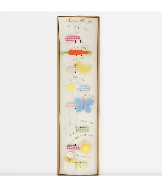 The gingham ribbon details, teamed with felt characters and pompom and thread embellishments, make these hair clips so special. They're also a long-lasting gift alternative to Easter candy - share them out amongst family and friends (great to pop into gift bags or use as party favours). They feature fun phrases, written in gold foil, that kids will love too.
