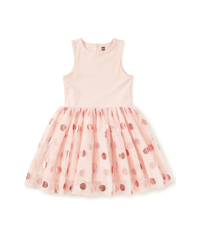 Made for twirls, celebrations, and extra-special moments, this ballet-inspired dress brings a little shine to every step. A smooth, fitted bodice pairs with a full, floaty tulle skirt designed to move beautifully with spins and skips. Shimmering flamenco-dot accents add festive sparkle, nodding to classic dance traditions with a playful twist. Fully lined for comfort and finished with a timeless sleeveless silhouette, it's a standout choice for parties, holidays, and dress-up days that call for something memorable.
