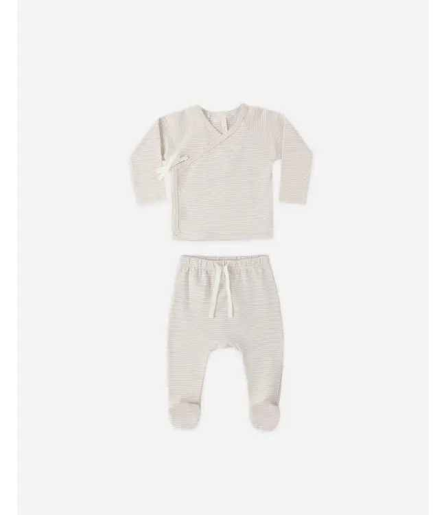 Bring home baby in this sweet set. Featuring our long sleeve wrap top with inside snaps and side tie, and matching drawstring footed pants.